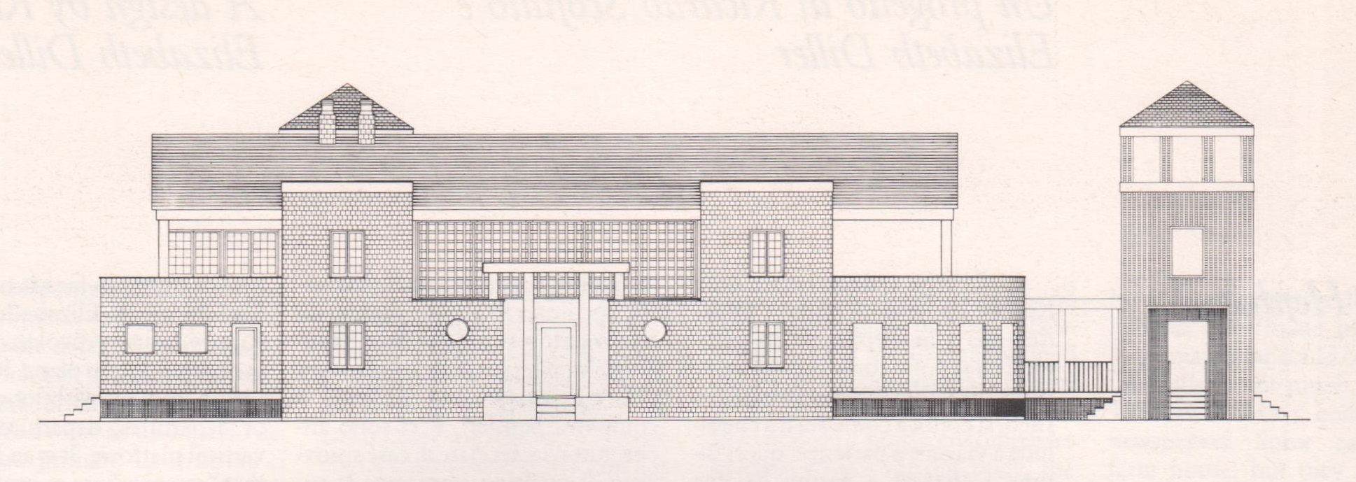 Progetto per una residenza estiva monofamiliare a due piani a East Hampton. Ad un tempo formalistico e pittoresco. La facciata è formale e ermetica; la sua simmetria diventa più permeabile, più informale e meno simmetrica sul retro.