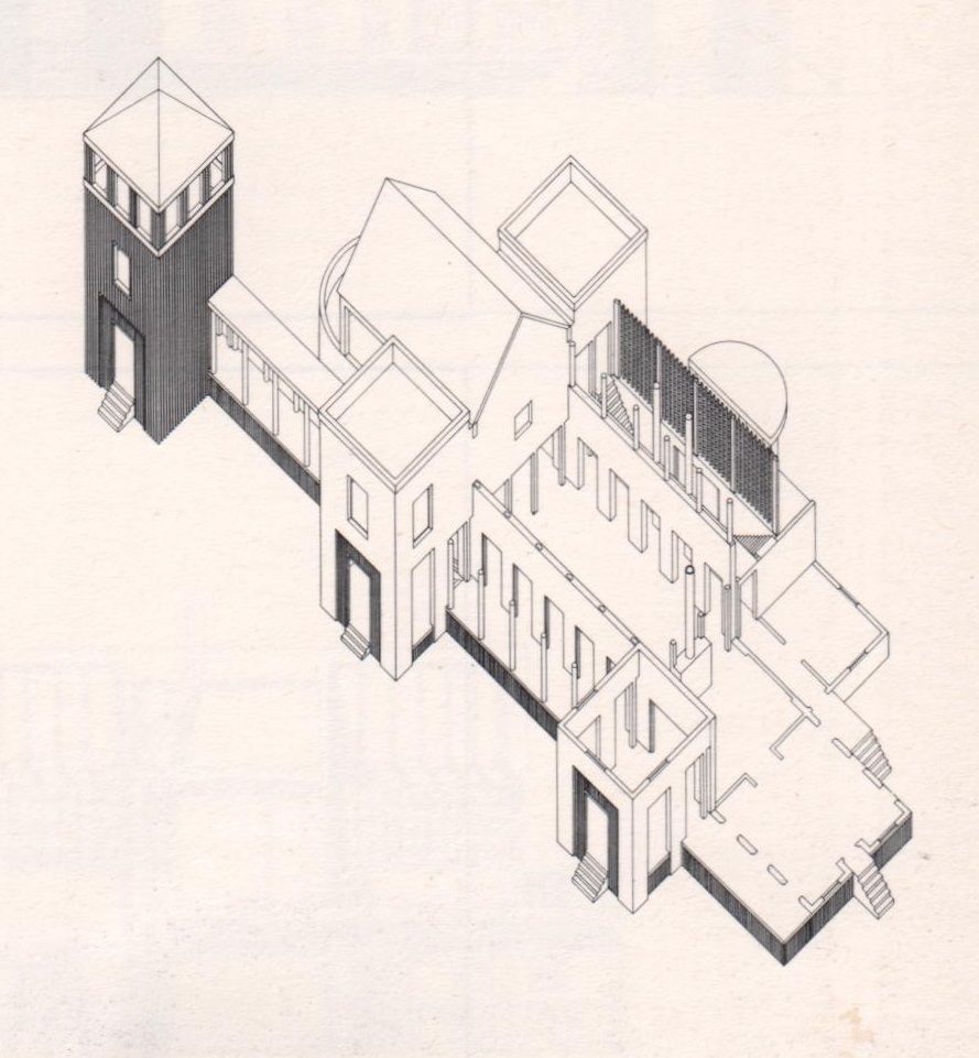 L’aggiunta di questa quinta torre sul retro interrompe bruscamente la trasformazione creando un nuovo centro, un nuovo asse. La tensione creata da questo nuovo asse è risolta dalla torre stessa.