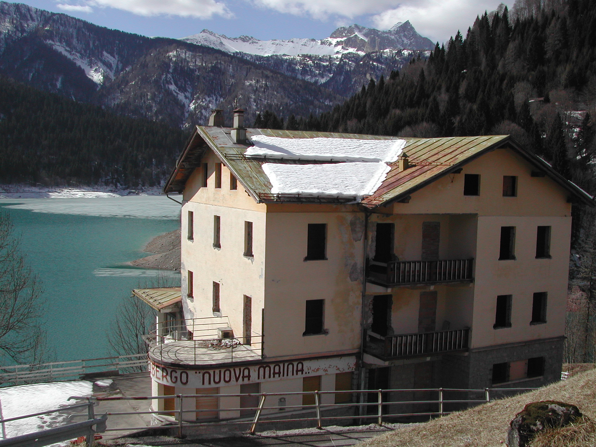 L’edificio si trova lungo la strada provinciale, in località “La Maina” da cui prende anche il nome ed è affacciato sul lago, di cui gode la splendida vista.