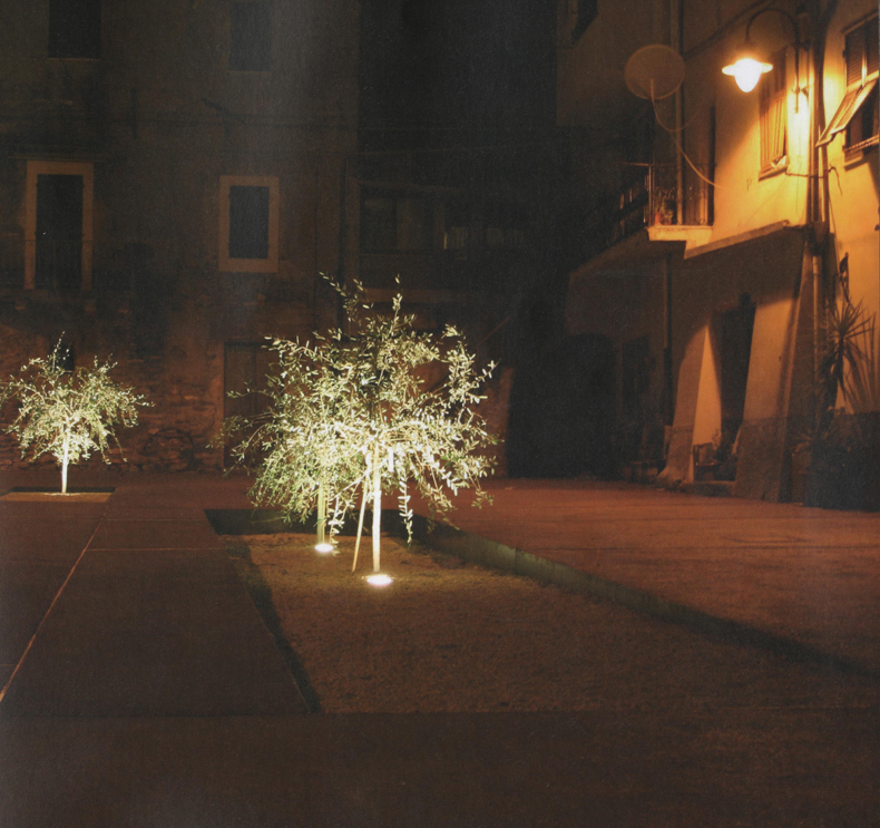 I piccoli olivi, essenza predominante del paesaggio circostante, come germogli fuoriescono dalle crepe per riappropriarsi del luogo entrando in rapporto diretto con il costruito e annunciandosi all’improvviso nel lungo allineamento dei fabbricati lungofiume.