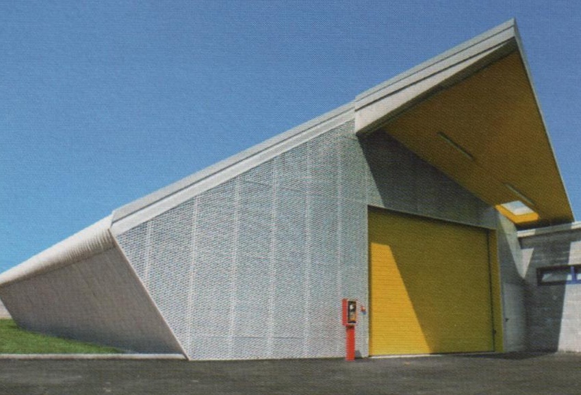 Disponibili in bobine e fogli in misure e spessori commerciali, le lamiere stirate sono indemagliabili e, al contrario di quelle forate, non presentano scarti di lavorazione in fase di produzione. A richiesta, il produttore può effettuare il taglio nelle dimensioni richieste e altre lavorazioni che interessano sia la conformazione finale come piegatura, imbutitura, calandratura nervatura, plissettatura e spianamento, sia le lavorazioni di dettaglio quali risbordatura, taglio al plasma, grecatura, ecc.. La scelta della maglia è strettamente legata all’applicazione a cui il materiale è destinato: il prodotto impiegato nel cantiere del Centro consortile è la lamiera stirata anodizzata colore naturale modello Ambasciata, della linea Pro Tech di Fils, società del Gruppo Longhi. Trasparente all’aria e alla luce (dimensione passo 110×40 mm; 16% di vuoto frontale; spessore pannello finale 18 mm), la lamiera in alluminio è stata preferita per la leggerezza (spessore 1,5 mm, peso 3,6 kg/mq) unita all’elevata resistenza antieffrazione e per l’inattaccabilità agli agenti atmosferici e alle sostanze contenute nei gas di scarico degli automezzi. L’assenza di ulteriori lavorazioni e la riciclabilità del materiale base assicurano la massima compatibilità ambientale della soluzione di rivestimento.