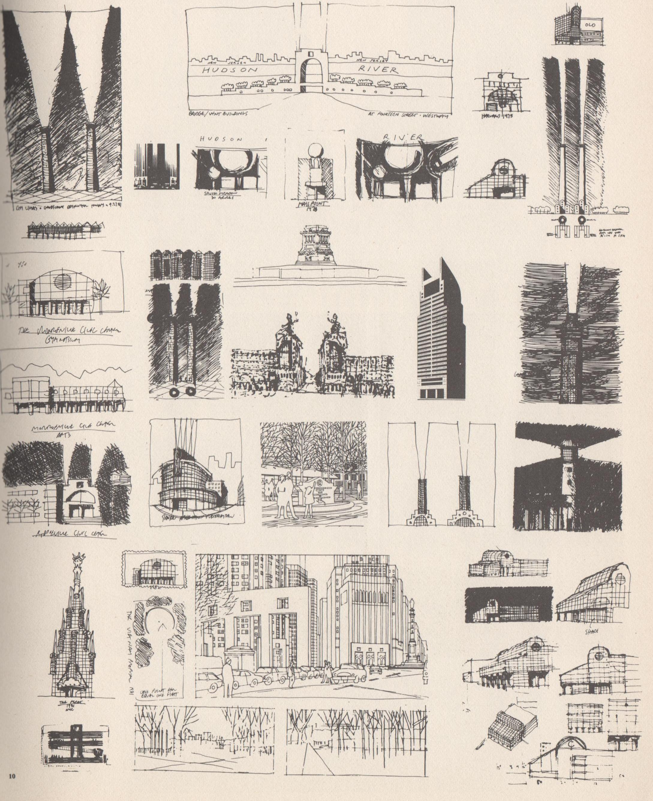 Tra i numerosi esempi troviamo Proposal for Man hattan Skyline – World trade center di Allan Wexler, e Night-light di James Pellettier per i quali gli elementi più significanti o i simboli più noti del paesaggio, vengono selezionati per essere giustapposti, decontestualizzandoli, ad altre iconografie urbane, o astratte figurazioni geometriche che invitano ad una lettura bidimensionale della città. Questo tipo di intervento che tende ad organizzare gli elementi della città in una serie di orchestrazioni formali, richiede all’architetto una complessa progettazione di vere e proprie partiture per le diverse componenti architettoniche.