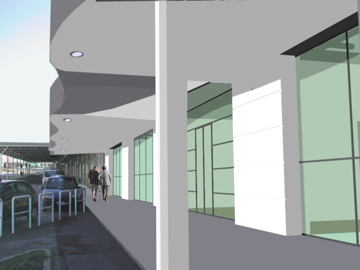 – nel rifacimento dei prospetti su tutti e tre i lati; per l’intervento riguardante le facciate sud e nord, la redistribuzione interna porta a nuove aperture per l’adeguamento normativo igienico-sanitario e quindi a nuove forometrie con oneri assai gravosi e ciò suggerisce la completa sostituzione dei pannelli sandwich esistenti con una nuova parete, che a questo punto si individua analoga a quella del lotto 2, ritmata tra vetrate e tamponamenti, per ottimizzare sia il rivestimento oltre che l’utilizzo dei nuovi ingressi. Per quanto riguarda il lato nord-est, che guarda il nuovo aeroporto, si ipotizza anche per questo prospetto un intervento qualificante in quanto esso è proprio di fronte alla nuova area delle partenze, quindi visibile dall’utenza di passaggio, costituisce il lato di ingresso per tutti gli operatori handling ed è quindi importante che possa essere migliorato.