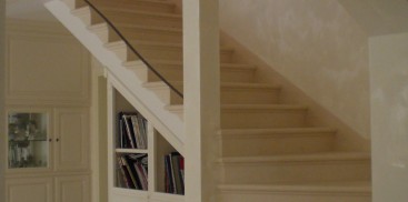 Intervento è stato realizzato con finiture e materiali esclusivi come pavimento al piano terra in Terrazzo alla Veneziana, scale rivestite in Pietra San Gottardo.