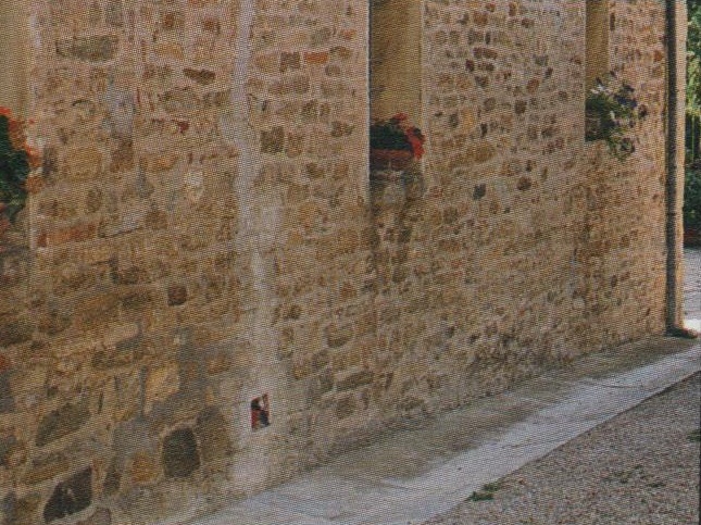 Le zone d’angolo e di innesto dei muri, per l’aumento di spessore, richiedono in genere una serie di fori di iniezione a distanza ravvicinata, disposti a raggiera e più profondi in prossimità degli angoli.